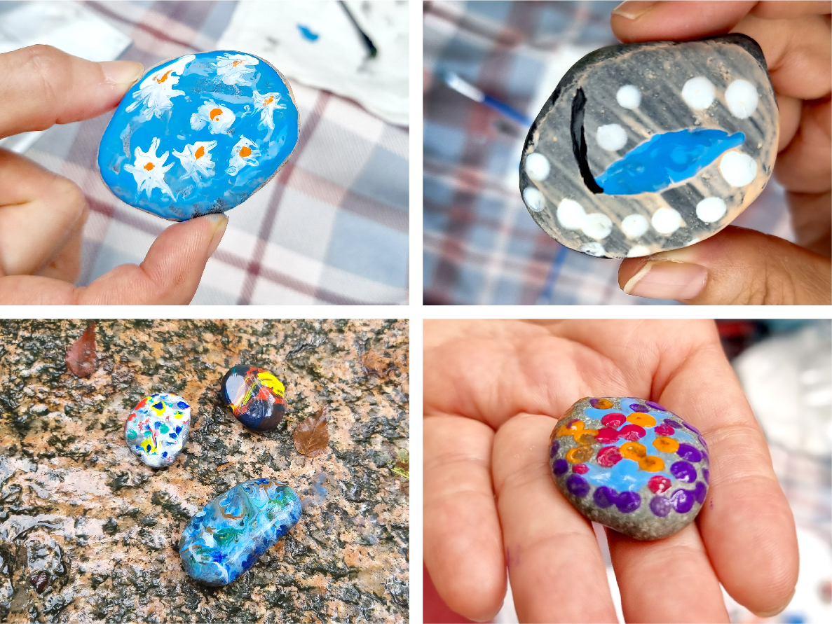 둥글납작 제각각의 다양한 모양을 가진 돌 위에 자연의 색을 담아 자유롭게 표현해보세요.