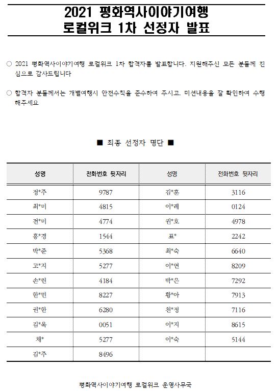 2021 평화역사이야기여행 로컬위크 1차 선정자 발표(1)